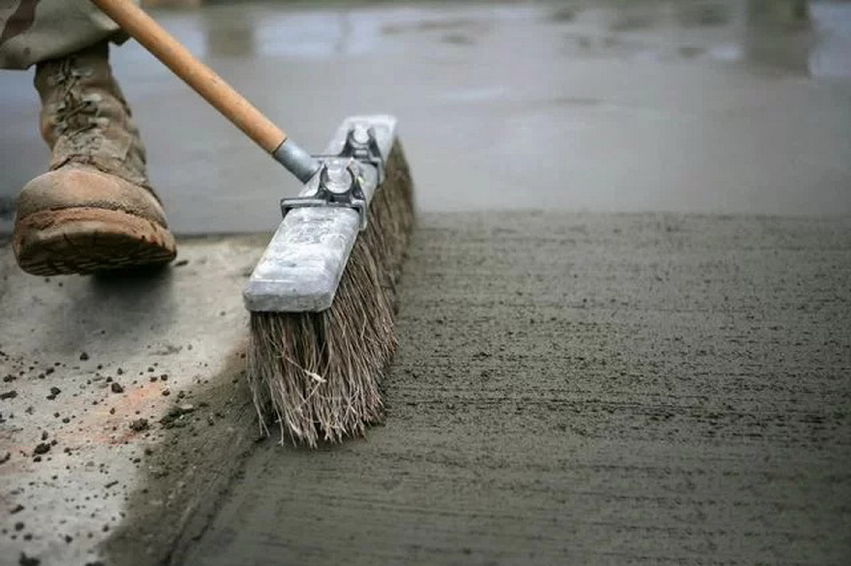 Первый: в США никто никогда залитый бетон не ровняет и разглаживает до зеркального состояния. Скорее, наоборот, они используют специальные браширующие щётки, которые превращают разглаженную поверхность в нечто похожее на мешковину.