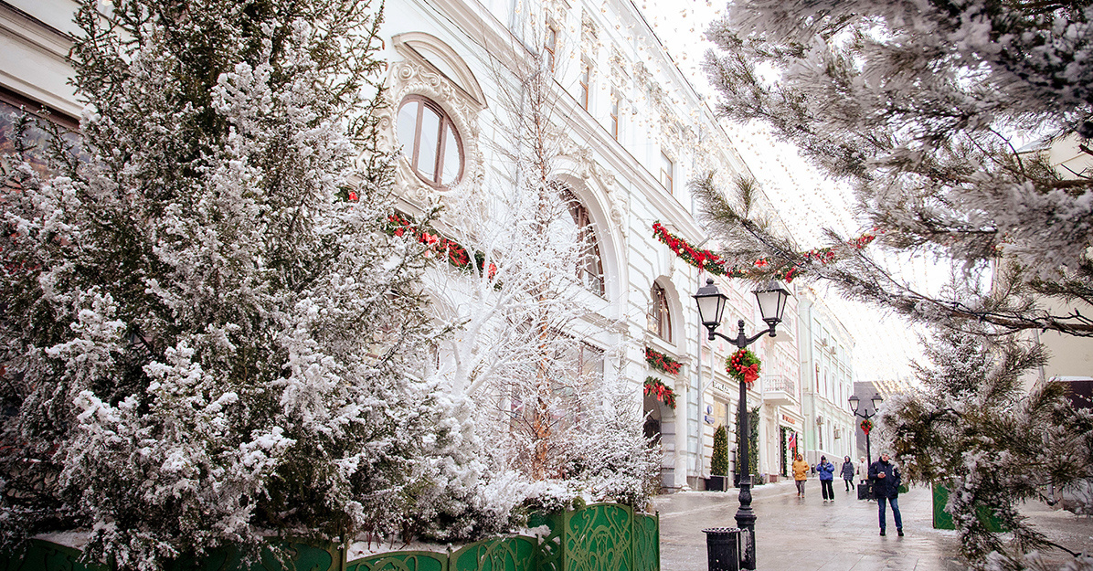 Москвичи и гости столицы могут полюбоваться необычными фасадами-арками, где расположены небольшие магазины с сувенирами, праздничными блюдами и согревающими зимними напитками. Праздничную атмосферу создают хвойные гирлянды с золотыми колокольчиками, растянутые над пешеходной зоной и новогодние композиции из пихт, елей, сосен и падуба – традиционного, но редкого для Москвы рождественского растения.
