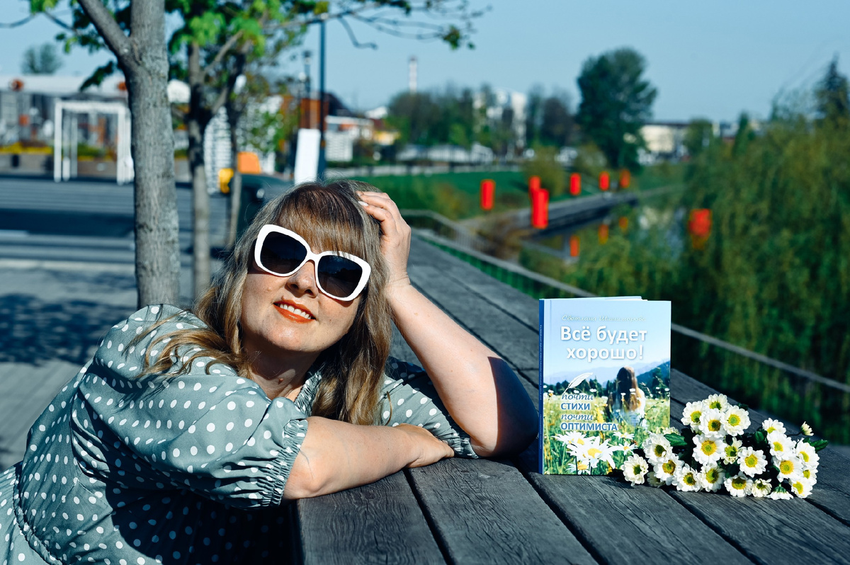 Я написала о своем желании в „Союз писателей“, познакомилась с Юлией Рущак — замечательным редактором и очень отзывчивым человеком. Был заключен настоящий договор с издательством. Так началась работа над моим небольшим, но душевным сборником стихов. Все для меня было удивительно: договор, большая команда (редактор, корректор, верстальщик, иллюстратор и т. д.), сам подход к работе. Все было четко построено по этапам, за которые отвечал конкретный сотрудник. И самое главное, я активно участвовала в процессе, а не просто ждала результата. Очень быстро мы завершили работу, и на выходе я получила небольшой тираж своего собственного сборника стихотворений „Все будет хорошо! Почти стихи почти оптимиста“.