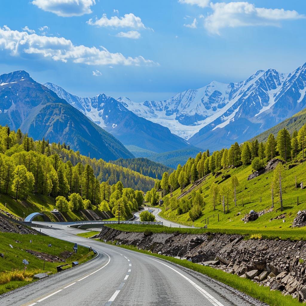Чуйский тракт – это не просто дорога, а настоящая легенда Алтая. Она тянется через горы, пересекает реки и проходит мимо древних курганов, словно связывая прошлое и настоящее. Этот путь был известен ещё кочевникам скифской эпохи, которые использовали его для торговли и перемещения между разными регионами. Сегодня Чуйский тракт начинается в городе Бийске и заканчивается у границы с Монголией. Он пролегает вдоль живописных долин рек Катунь и Чуя, петляет среди величественных гор и обрывается у подножия снежных вершин. Вдоль тракта можно увидеть множество археологических памятников, свидетельствующих о том, что эти земли были населены тысячи лет назад. Путешествие по Чуйскому тракту – это возможность окунуться в историю и культуру Алтая. Здесь каждый камень хранит память о тех временах, когда по этим местам проходили караваны с драгоценными товарами, а местные жители сражались за свою свободу и независимость. В начале пути вас встретят зелёные луга и поля, где пасутся стада коров и лоша