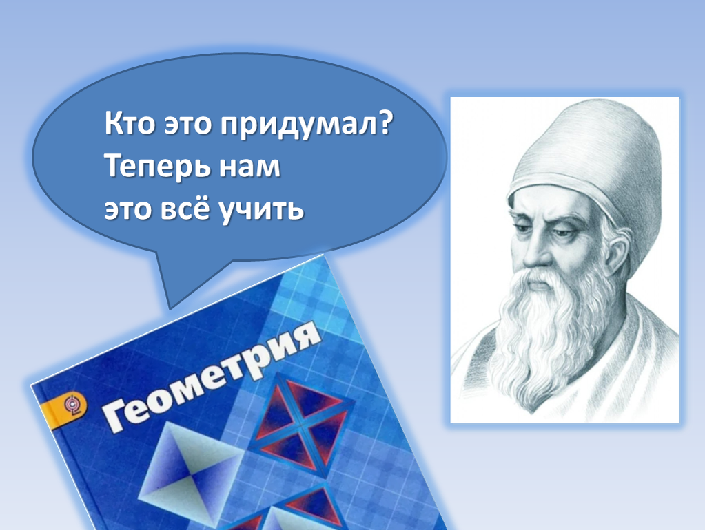 Причем Пифагор жил еще раньше. Эту фамилию слышали даже те, кто плохо учил математику. Говорят, что Пифагор даже не доказывал свою теорему про катеты и гипотенузу. Она была известна еще египтянам. Как-то же они сумели построить огромные пирамиды. Построить прямой угол на большой территории, оказывается, почти невозможно, если нет таких простых знаний. Кстати, фраза «что и требовалось доказать» принадлежит древнегреческому математику Евклиду. Этими словами он завершал каждое своё математическое рассуждение. — Что бы ты предпочел: два целых яблока или четыре половинки? — спросили у Евклида.