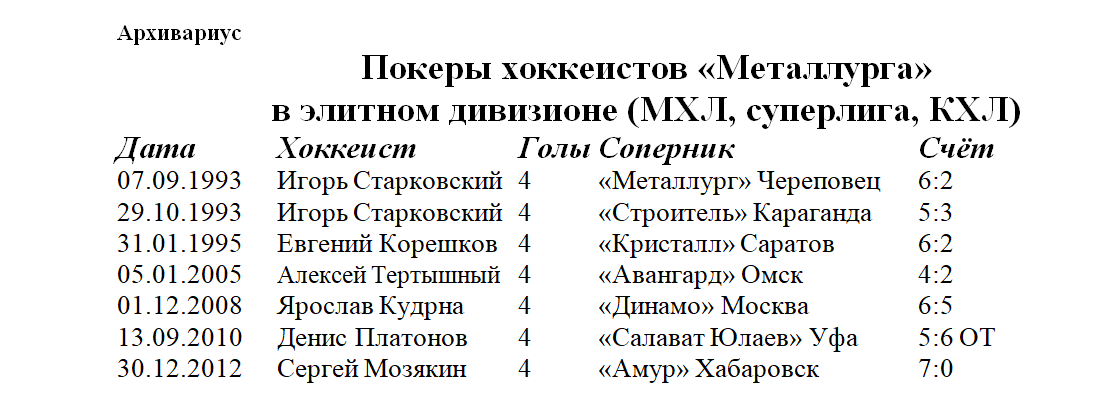 Использованы фото из архива газеты «Магнитогорский металл», ХК «Металлург» и с сайта ХК «Ак Барс»