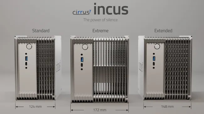 Источник изображения: Cirrus7 Немецкий производитель компьютеров Cirrus7 объявил об обновлении своего мини-ПК Cirrus7 Incus, который теперь поддерживает новейшие процессоры AMD Ryzen серии 9000. Оригинальная модель Incus, выпущенная в 2019 году, отличалась пассивной системой охлаждения. Теперь же, благодаря усовершенствованной конструкции, новинка способна эффективно справляться с мощными процессорами, включая Ryzen 7 9700X. Как отмечает производитель, это «первый мини-ПК с пассивным охлаждением, способный поддерживать такой процессор».Cirrus7 разработала три версии системы охлаждения для модели Incus: стандартную, расширенную и экстремальную. Эти версии различаются по тепловой массе и размерам корпуса, что позволяет подобрать оптимальную конфигурацию в зависимости от нагрузки. Экстремальная версия охлаждения, например, идеально подойдёт для процессоров с высоким энергопотреблением, таких как Ryzen 7 9700X, в то время как для менее мощных APU лучше подойдут другие варианты. Источник из