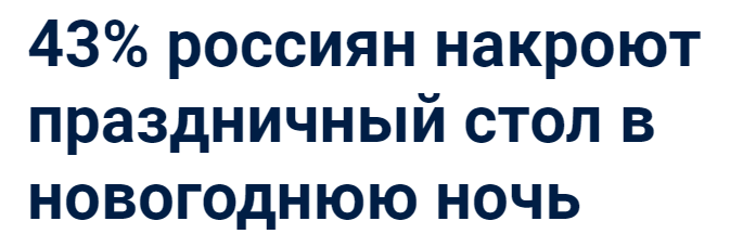 Только 43% россиян собираются накрывать в новогоднюю ночь праздничный стол. 13% жителей России собираются делать это на деньги, взятые в кредит, сообщил со ссылкой на собственное исследование «Почта Банк». В исследовании приняли участие 2500 клиентов банка, уточнили авторы исследования.