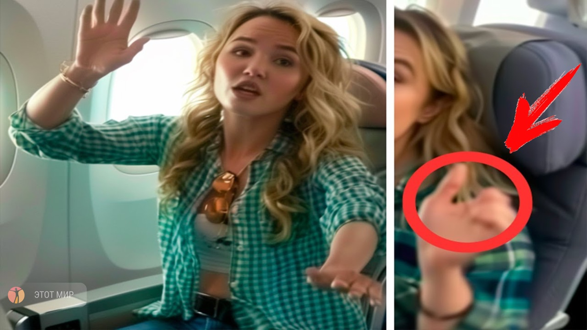 Женщина продолжает подавать сигналы руками в самолёте — бортпроводник понимает, что делать