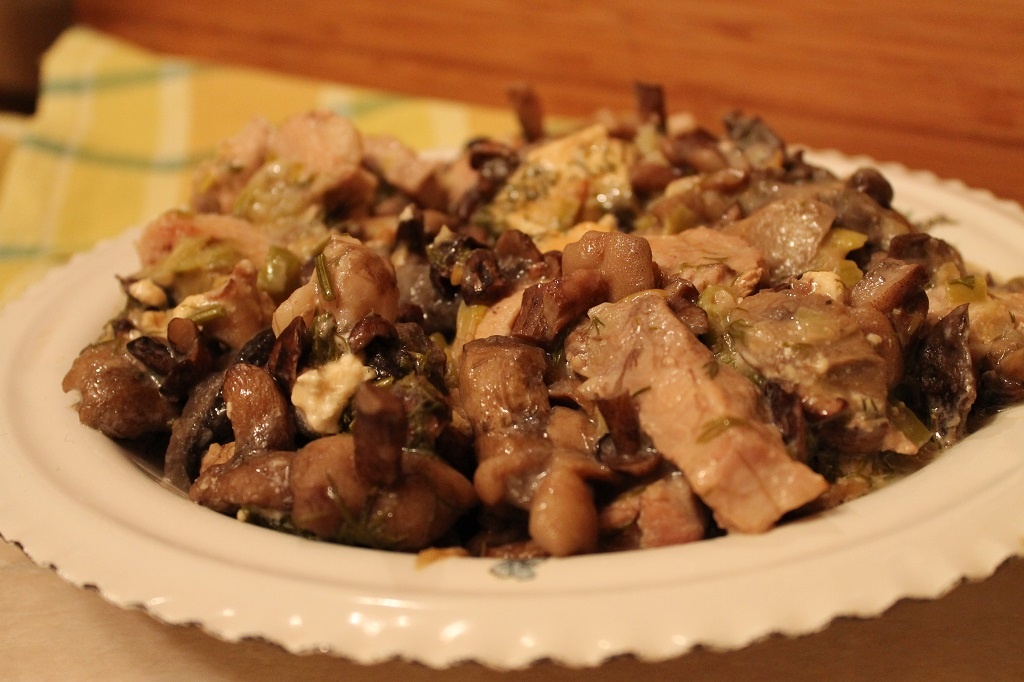 Грибы – у меня пол-литровая банка отварных лесных, можно свежие или консервированные шампиньоны