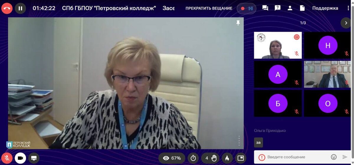 Результаты деятельности рабочей группы за год представила Васина Елена Вячеславовна, член Президиума Союза директоров СПО России, председатель РО «Совет директоров СПО СПб», директор СПб ГБПОУ «Петровский колледж».