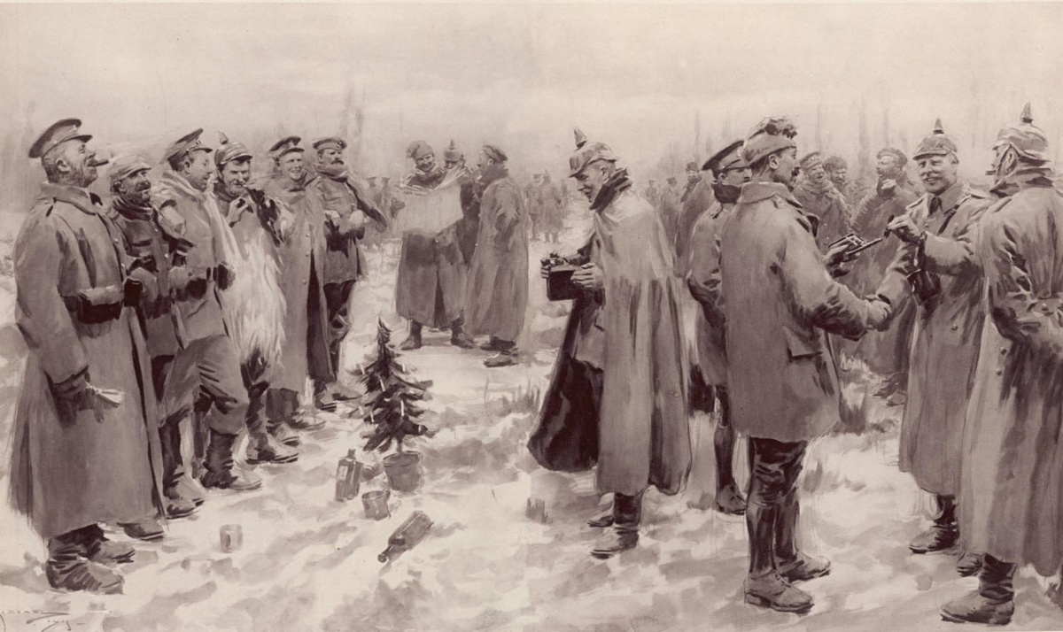 24 декабря 1914 годана Западном фронте Первой мировой войны произошло одно из самых необычных и трогательных событий - Рождественское перемирие. Оно произошло стихийно вопреки приказам командования, и стало символом человечности даже в условиях страшной войны. Первая мировая война началась летом 1914 года. После первых месяцев боёв линия фронта стабилизировалась и противостояние перешло в позиционную войну в окопах. Западный фронт представлял собой цепочку траншей от Северного моря до Швейцарии. Солдаты с обеих сторон находились в ужасных условиях - холод, грязь, отсутствие сна и постоянный страх смерти. В начале декабря Папа Римский Бенедикт XV призвал правительства воюющих стран к официальному перемирию: "орудия могут замолчать хотя бы в ночь, когда поют ангелы". Но эта инициатива поддержки среди командования стран-участниц не получила. 24 декабря в канун Рождества солдаты обеих сторон начали спонтанно прекращать боевые действия. Все началось с того, что немецкие войска, получив