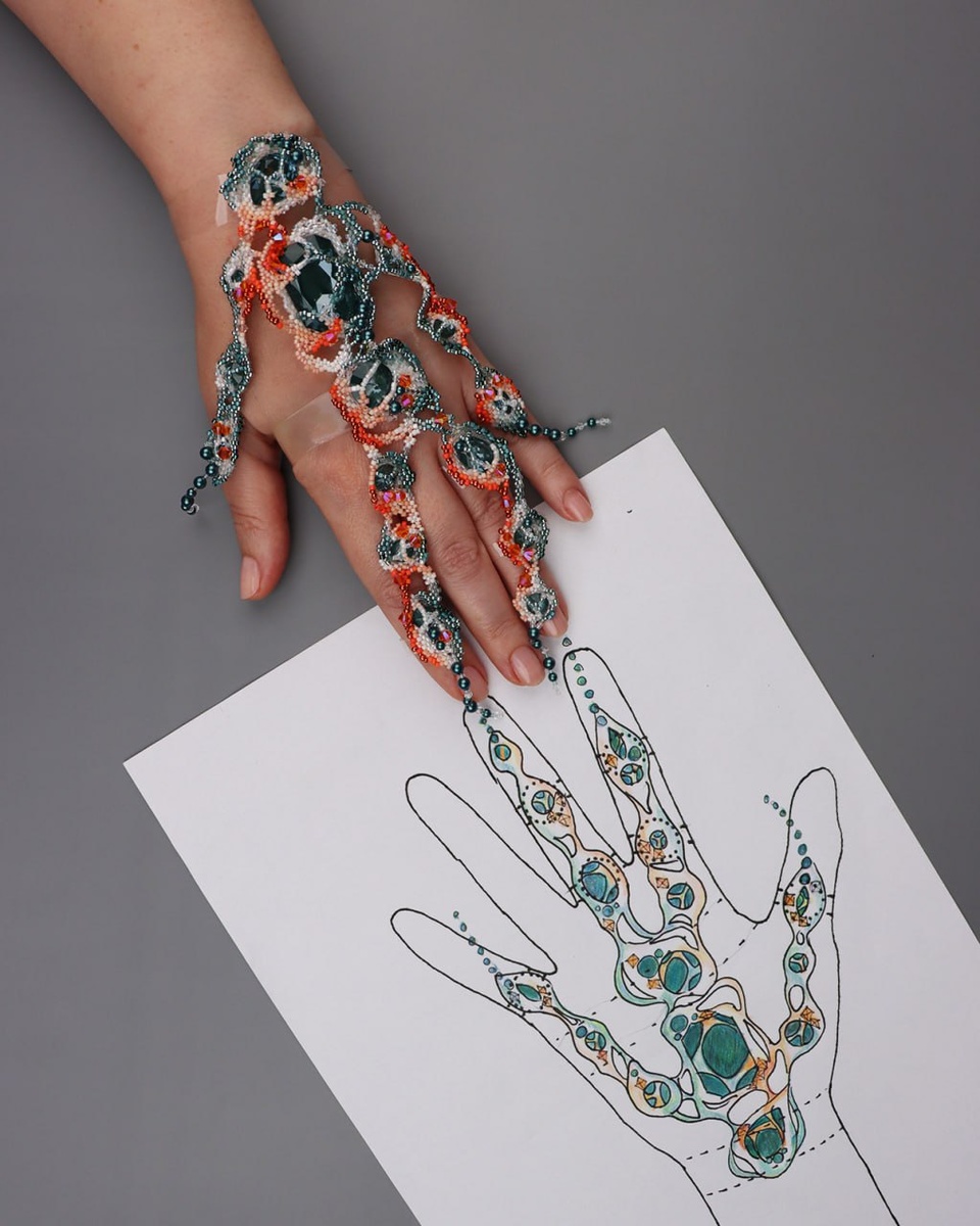 Все! Показываю свой результат и прощаюсь с необыкновенным челленджем от @sw_strazy. Я получила набор в цвете Pine Green (новый оттенок зеленого в линейке Сваровски) и тему "Сюрреалистический космос" для разработки украшения. Мы только начинаем познавать космос, наверное все в нем сюрреалистично. Но для нас всегда будет неизменной одна вещь - мы. В любом путешествии нас сопровождаем мы сами. Наши мысли, чувства, воспоминания, надежды. И эта фигура символизирует их. Нет четкости формы, все в движении, лишь общие, узнаваемые черты. Кажется, что еще мгновение и фигура изменится. Я решила разместить фигурку на запястье. И для того, чтобы она могла двигаться и для того чтобы продолжить аллегорию связей. Это не сам человек, а лишь представление о нем. Из набора, который я получила в #sw_challenge24 осталось 3 жемчужины и металлические касты (крепления для камней). Частично это было моей целью (использовать все элементы), частично все удачно пригодилось. Работа выполнена в моей любимой техноло