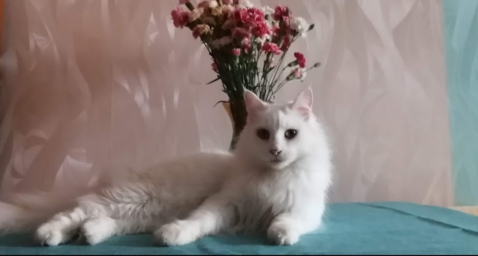 Папа мейн кун ,белый, кот в возрасте, но не смог пройти мимо красавицы сибирячки.
