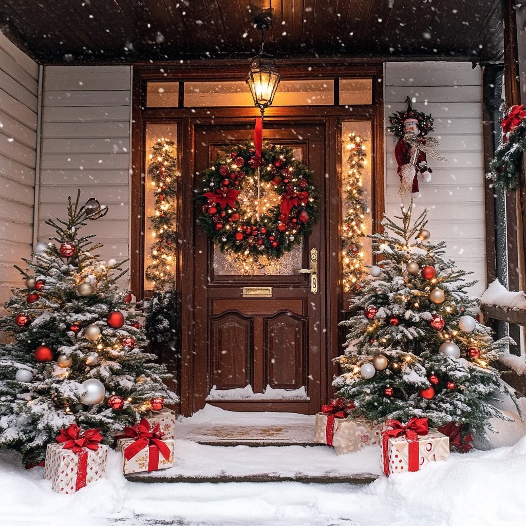 Довольно часто двери незаконно обделяют вниманием при украшении дома. А зря! Ведь именно дверь — это большой и привлекающий внимание холст для творчества. Первое, что приходит на ум для дверного наряда — это еловые гирлянды или венок. Но если найдете время, воплотите хотя бы одну из идей из этой статьи. Для этого понадобится: Каждую игрушку вешаем на отдельную ленту. Длина ленты в идеале должна быть разной, так, чтобы, собрав игрушки вместе, получилась гроздь. Эту гроздь вешаем в раму вместо картины так же на красивую ленту, и лентой же лентой раму к крючку. Только, пожалуйста, не хлопайте этой дверью в сердцах. Иначе композиция до Нового года не доживет. Этот вариант для стеклянных дверей — самое то. Чем больше секций расстекловки, тем круче будет смотреться ваш бумажный снегопад. Пригласите к «снежиночному» творчеству детей и мужа. Пообещайте блинчиков тому, у кого получится самая красивая снежинка. Крепить красоту лучше на нано скотч. Его не видно, следов после себя не оставляет. Пр