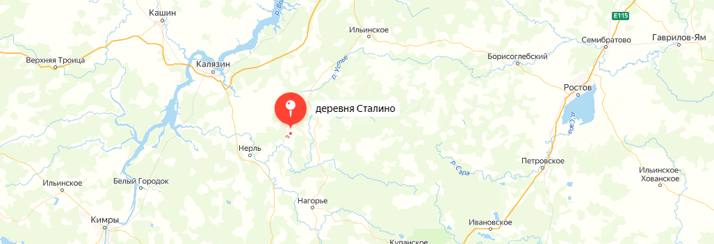 Пошехонская деревня Ленино, в названии которой мы выявили в прошлый раз исторические параллели с вождём революции, не единственный пример "политического" ойконима. На карте страны можно обнаружить деревни, в названиях которых также звучат знаменитые фамилии руководителей нашей страны. Да, есть такая деревня. Сталино расположено в Калязинском районе на границе Тверской и Ярославской областей. До 60-х годов 20 века в СССР многие населённые пункты носили имя второго советского вождя. Среди них несколько крупных городов, таких как Сталинград (Царицын, Волгоград), Сталино (Донецк), Сталинабад (Душанбе), Сталинири (Цхинвал), Сталиногорск (Новомосковск). В 1937 году всерьёз обсуждалась даже идея переименовать Москву в Сталинодар. Иосиф Виссарионович не поддержал эту затею, усмотрев в этом глупость. После 20-го съезда КПСС практически все сталинские ойконимы, за исключением нескольких деревень, были снова переименованы. Города вернули обратно к старым названиям, либо перекрестили на новый лад,