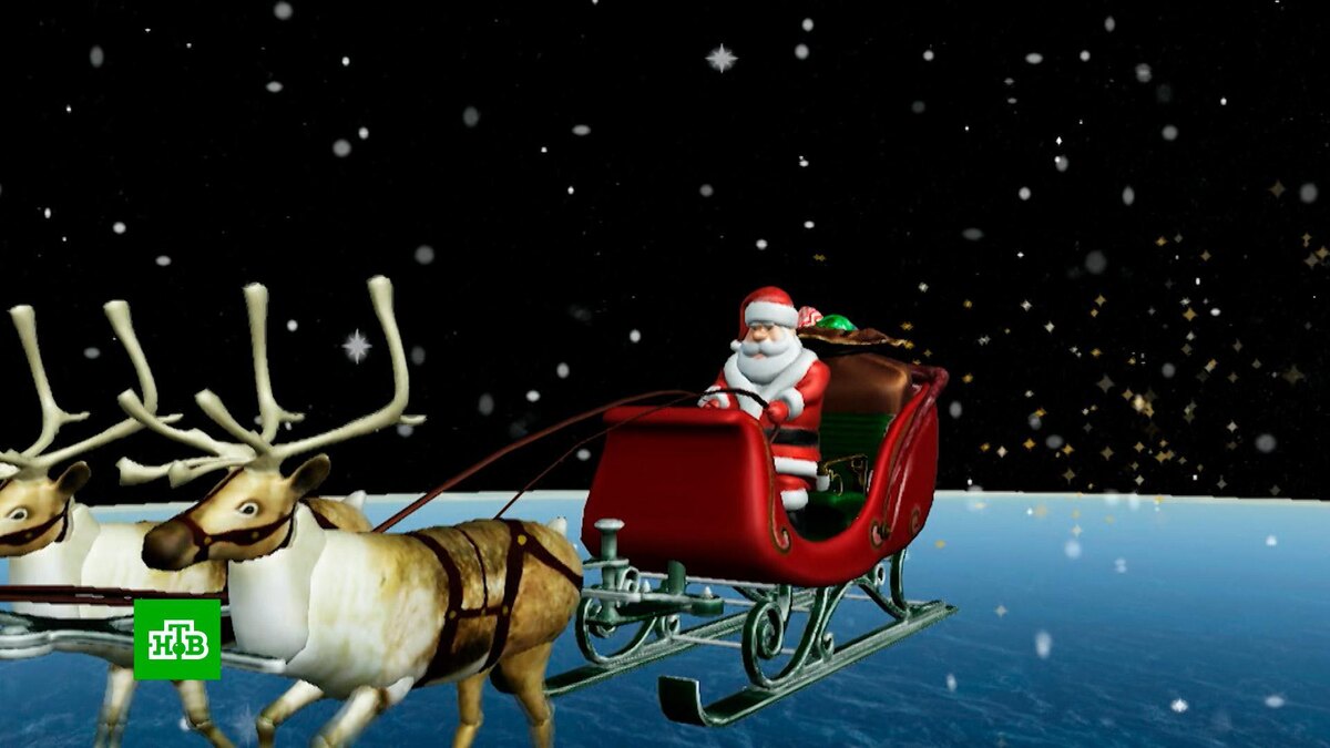 [ Смотреть видео на сайте НТВ ] В эти минуты над Землей летит Санта Клаус. Его сани, которые тянет упряжка волшебных оленей, движутся в стратосфере со средней скоростью 8,5 тыс. километров в час. Об этом заявили представители объединенного командования ПВО США и Канады. Организация ежегодно следит за рождественским путешествием зимнего волшебника. Этот военно-сказочный проект был запущен в середине прошлого века. Раньше штаб ПВО передавал данные о движении Санты по радио и через газеты. Сейчас информация транслируется в режиме реального времени на специальном сайте, который может посетить любой желающий. В руководстве сил противовоздушной обороны Северной Америки абсолютно серьезно заявляют, что месторасположение оленьей упряжки определяют сразу три независимых системы: спутники, радары и дежурные самолеты. Аппаратура слежения якобы наводится на мерцающий красный нос вожака упряжки — оленя Рудольфа. Кстати, над Россией, судя по данным объективного контроля, Санта уже пролетел. Когда Са