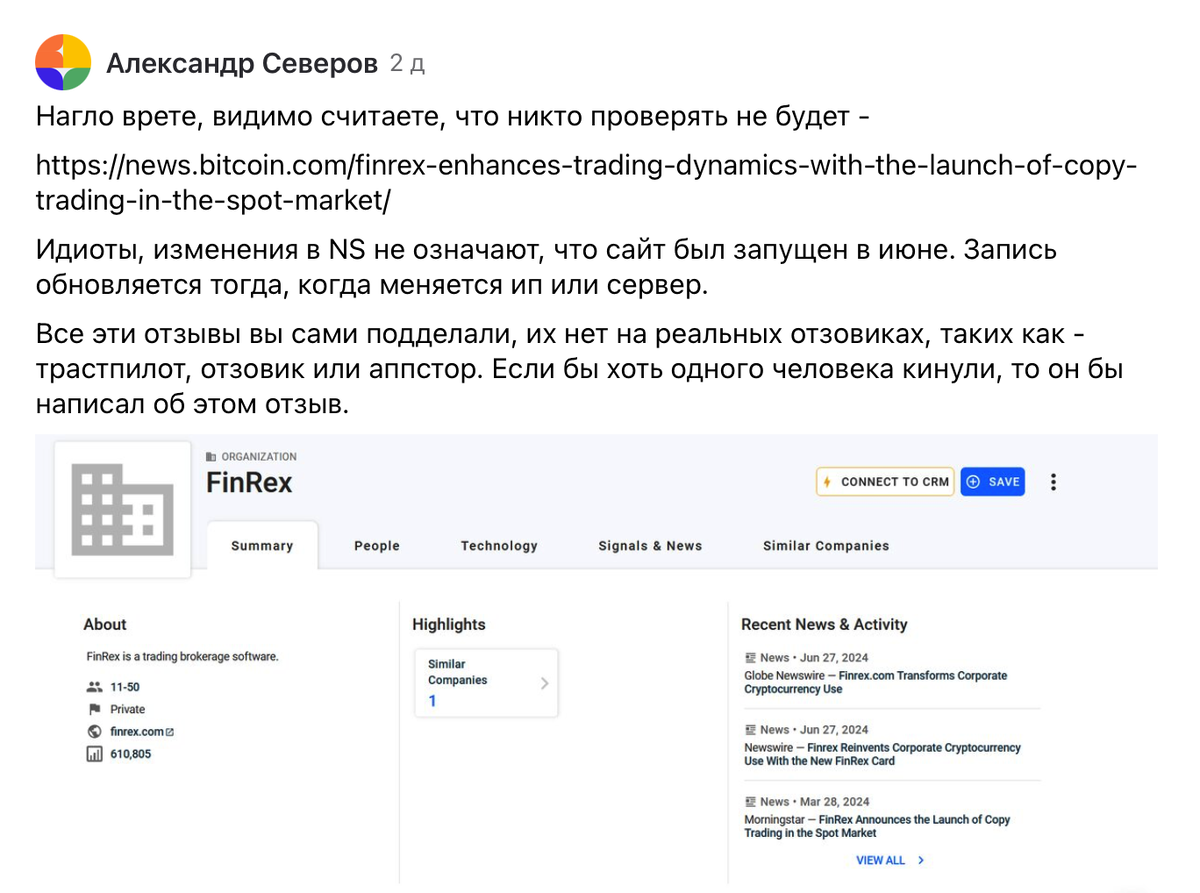 Без лишних слов и прелюдий разберем комментарий еще одного участника этого мошеннического проекта!