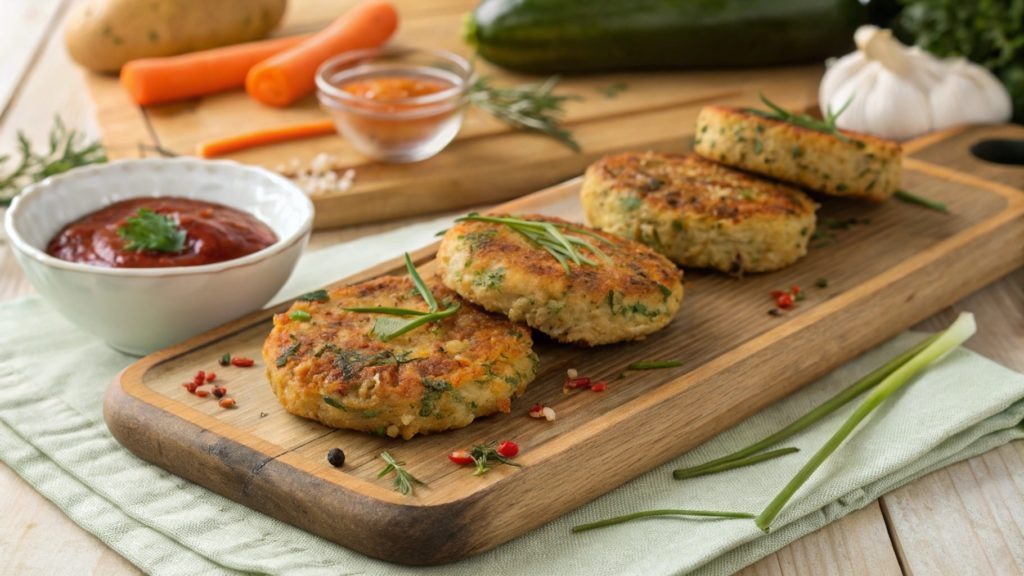 Овощные котлеты – это отличный способ разнообразить свой рацион, особенно для вегетарианцев или тех, кто следит за здоровьем. Запеченные в аэрогриле, эти котлеты сохраняют максимум питательных веществ и радуют насыщенным вкусом. Это блюдо идеально подходит для легкого ужина или как закуска на праздничном столе. Для улучшения вкуса можно добавить специи по вашему вкусу, такие как паприка или куркума.Для веганской версии замените яйцо на 2 ст. ложки муки, разведенной в воде.Готовые котлеты можно подавать с соусом на основе йогурта или с томатным соусом.Остатки можно хранить в холодильнике до 3 дней и легко разогреть перед подачей. Общее время: 1 час (включая подготовку и выпекание). Рецепт рассчитан на 4 порции.