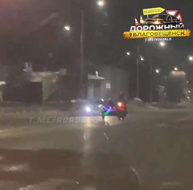Соцсети: новогодний мотоцикл ехал по улице в Благовещенске