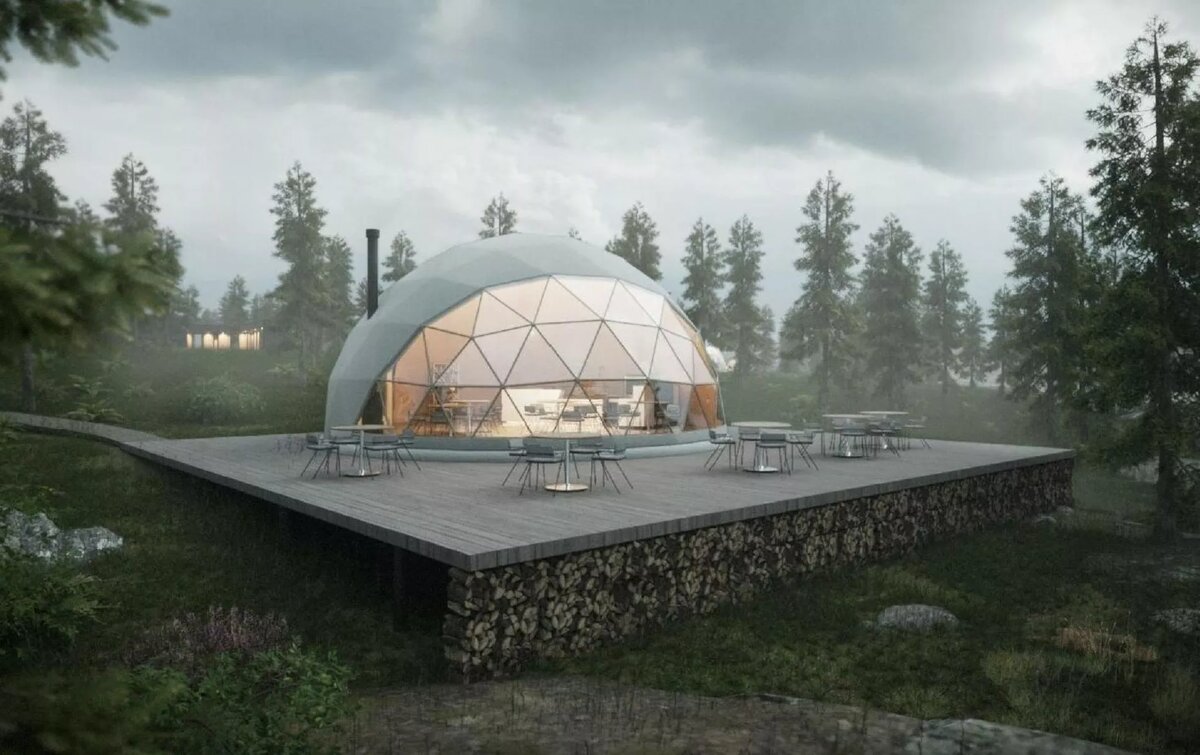 В туристический комплекс войдут 10 купольных домов, в которых смогут отдыхать до четырёх человек, баня, ресторан и причал.