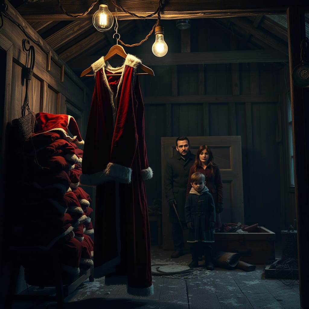 Дед Мороз стоял посреди комнаты, окружённый кучами красных шуб, каждая из которых будто вопила о судьбе тех, кто носил её раньше. Холодный воздух тянулся к его коже, несмотря на закрытые двери. Мысли вихрем проносились в голове: как он сюда попал, что будет дальше, и, самое главное, как выбраться.