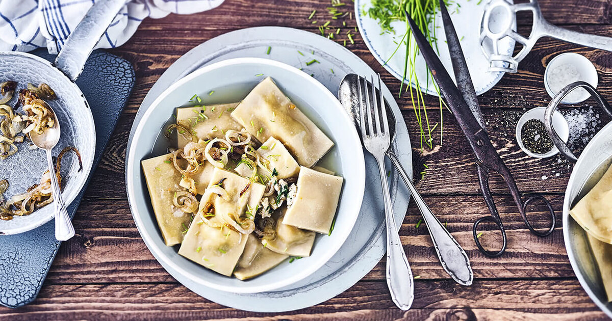 Маульташен – популярный рецепт национальной немецкой кухни. Вкусное блюдо напоминает обычные пельмени, но отличается составом начинки и уникальной формой. Не существует стандартного размера сытных «квадратиков», которые могут быть крупными или миниатюрными. Их отваривают в воде с приправами, готовят в пароварке, обжаривают и даже запекают в духовке под нежным сметанным соусом. Всё зависит от финансовых возможностей и кулинарных фантазий хозяек.