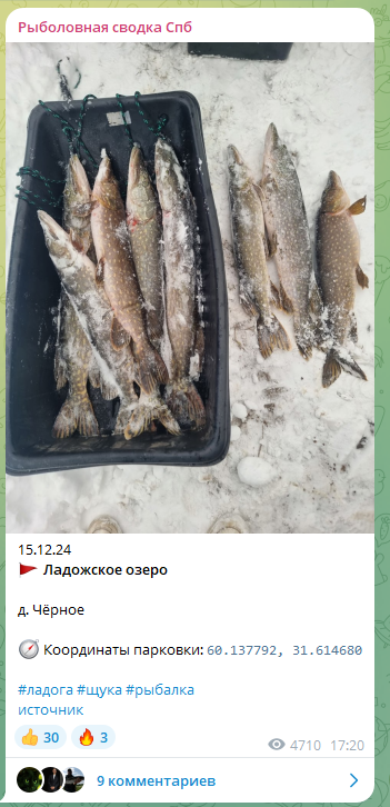 Для всех, кого заинтересовала ловля на жерлицы в Ленинградской области, подготовил статью про топ 5 лучших мест, где выставляются на щуку зимой со льда, также во многих этих местах ловят на кружки по открытой воде. Читайте материал до конца, чтобы узнать, где лучше всего ловить на жерлицы и как вообще туда добраться. 1) Ладожское озеро, деревня Чёрное. Здесь расположена известная многим бухта, которая богата окунем. Но не только окуня здесь в достатке, вдоль тросты также хорошо ловят щук. Бухта встаёт одной из первых на Ладоге, поэтому тут удобно открывать сезон, да и щука хорошо берёт в это время, пока в некоторых других локациях ещё ненадёжный лёд. При этом щука здесь с разной периодичностью клюёт и в течение остальной зимы. Из-за толпы, ловящей окуня, обычно в деревне всё заставлено машинами, поэтому часто остается искать свободные места подальше от моста через канал. 2) Волочаевское озеро. Излюбленное место паломничества жерличников по первому льду из года в год. Озеро богато щукой