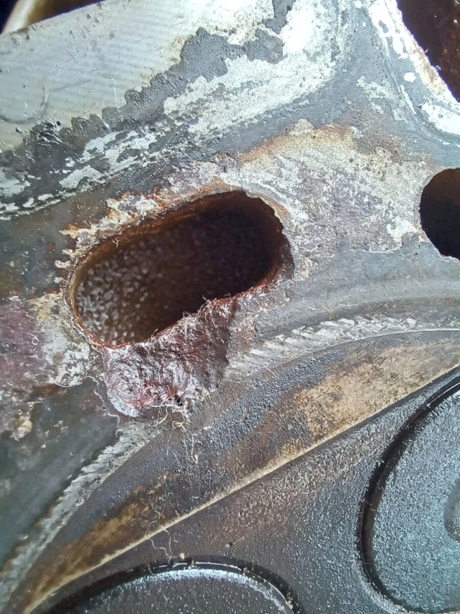 Сняв ту саму ГБЦ увидели такую картину - каналы охлаждения попросту разъело.