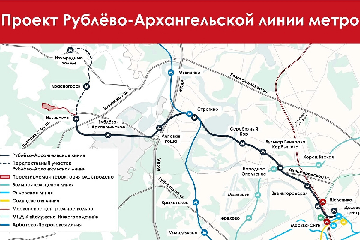 Метро протянут до Красногорска Рублёво-Архангельская линия пройдёт от «Москва-Сити» до Рублёво-Архангельского за МКАД и в перспективе в Красногорск.