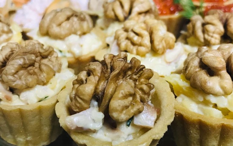 На Новый год принято устраивать богатое застолье, подавать много сытного, и впоследствии это может негативно отразиться на самочувствии. Чтобы не перегружать желудок и организм в целом, можно сократить количество пищи, например обойтись без главного блюда либо приготовить что-то легкое в небольшом количестве, сделав в меню упор на закуски. Эксперты Роспотребнадзора назвали несколько необычных рецептов. 1. Тарталетки с хурмой Копченая куриная грудка – 100 г Тарталетки – 16 шт. Хурма – 200 г Натуральный йогурт – 3 ст. л. Грецкие орехи – 30 г Мягкий козий сыр – 70 г Кинза – 3 веточки Петрушка – 3 веточки Зернистая горчица – 1 ч. л. Орехи обжарьте на сухой сковороде и мелко порубите. Куриную грудку нарежьте мелкими кубиками. Часть хурмы нарежьте – тонкими дольками по количеству тарталеток, оставшуюся хурму – мелкими кубиками. Зелень измельчите (оставьте несколько веточек для украшения). Соедините в миске йогурт, орехи, горчицу, соль, перец и зелень. В другой емкости смешайте нарезанную куб