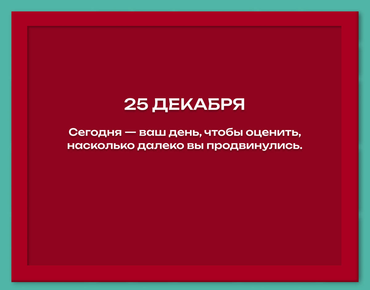 Энергия числа 25 говорит о глубокой внутренней работе, о переменах, которые делают нас сильнее и мудрее. Этот день — возможность осознать, как вы изменились за прошедший год, какие трудности преодолели и какие уроки извлекли. Энергии сегодняшнего дня настроены на внутреннюю мудрость, самовыражение и достижение целей. Что принесет этот день: ✨ Время для размышлений: Сегодня хорошо посвятить время самопознанию, планированию и осмыслению важных вопросов. Возможно, ответы, которые вы искали, появятся неожиданно. ✨ Творческая энергия: Это отличное время для общения, креативных занятий и реализации идей, которые могут поднять настроение вам и окружающим. ✨ Устремленность к успеху: Энергия дня акцентирует внимание на ваших амбициях. 💡 Совет на день: попробуйте найти баланс между внутренним миром и внешними делами. Слушайте свою интуицию, но не забывайте действовать. Если вы сумеете объединить глубину размышлений с практическими действиями, этот день принесет ощутимые плоды. Возьмите свой дн