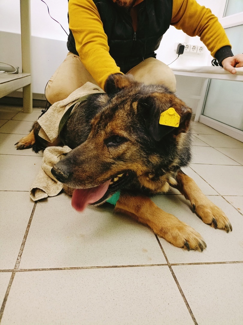 Вчера случилось то чего мы всегда боялись забирая диковатых собак из МП г.Перми. Ничто не вечно и животные точно так же как люди стареют и болеют. Один из них, Браун, заболел. Пес на кормежку не вышел, а выполз из будки. Его задние ноги перестали его слушаться - не может самостоятельно встать. Благо ест. Понятно что вместо магазина мы начали обзванивать клиники и поехали в г.Пермь.