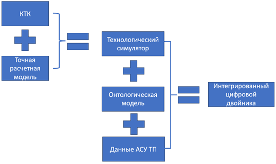 Интегрированный цифровой двойник – технологический симулятор, интегрированный с онтологической моделью производства и получающий данные из систем АСУ ТП в «реальном» времени.