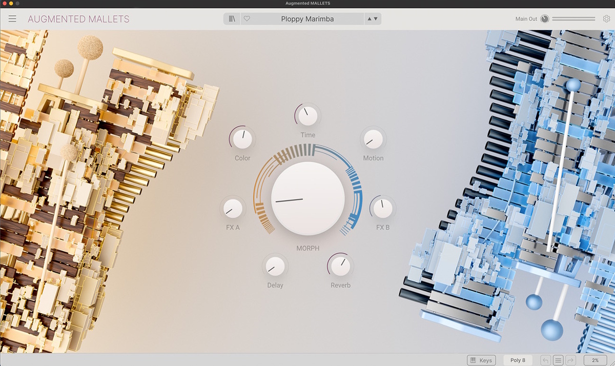 Augmented Mallets Play представляет собой библиотеку перкуссионных молоточковых инструментов. В состав плагина входят звуки маримбы, вибрафона и челесты, дополненные производительным движком синтеза. По словам компании, пользователи могут использовать исходные звуки или генерировать необычные синтезированные сигналы.