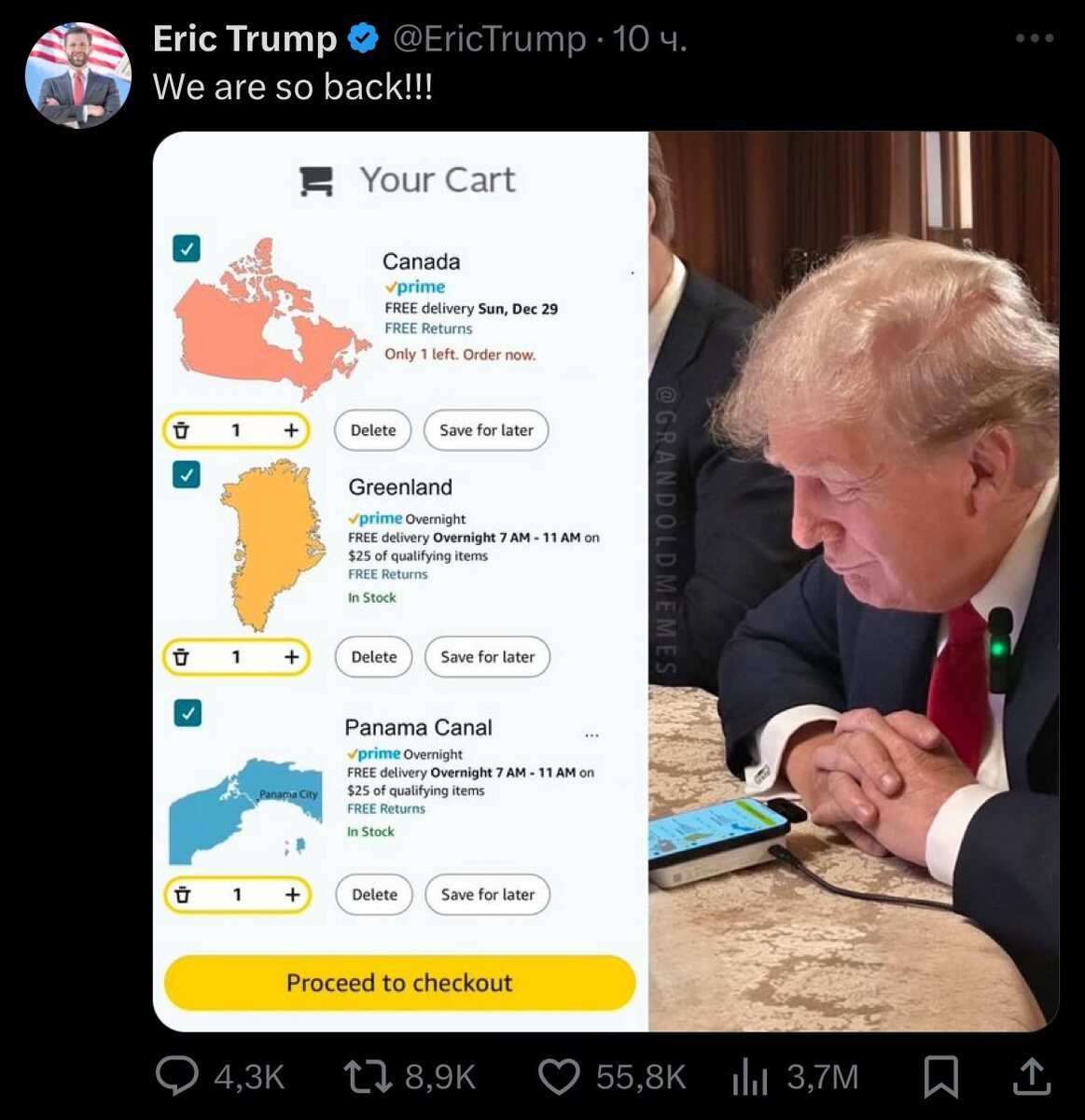 В том, что "всё возможно" сомневаться не приходится. И, если с Канадой, конечно, сложно, хотя и заманчиво. То вот с Гренландией... в случае серьёзных намерений проблем не возникнет.