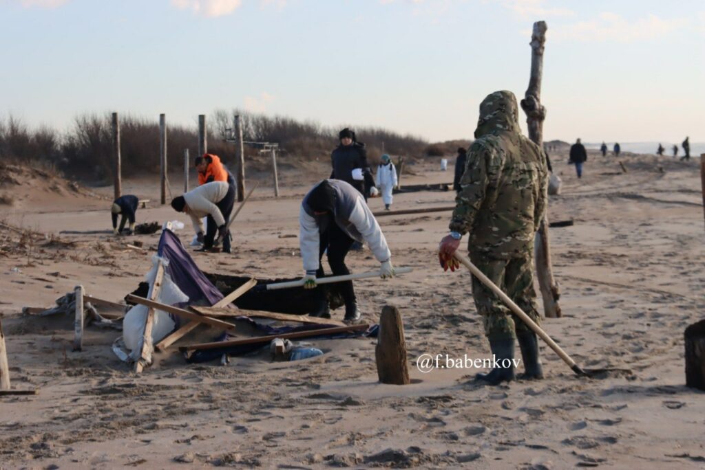 Глава Темрюкского района Федор Бабенков в телеграме написал, что нефтепродукты и мусор, принесенные штормом, собрали и отправили на переработку.