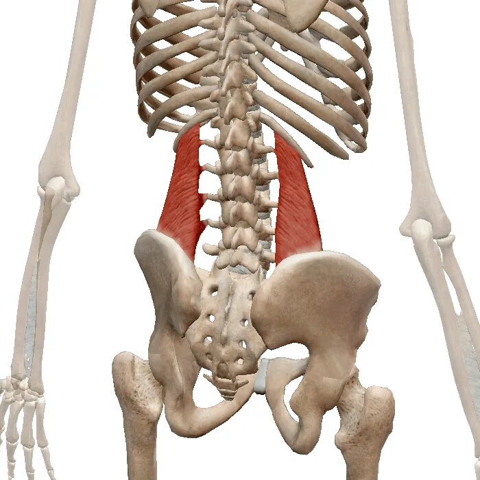 Наиболее частой причиной болей пояснице является спазм квадратной мышцы поясницы, в 80% процентов случаев спазм отмечается слева. Квадратные мышцы поясницы подобны растяжкам мачты удерживают поясничный отдел позвоночника вертикально. При укорочении одной из мышцы позвоночник отклоняется в сторону спазмированной мышцы, это видно на рентгеновских и МРТ снимках в виде дугообразного искривления позвоночника в сторону спазмированной мышцы и перекоса таза. Диагностика спазма квадратной мышцы визуальная и при нажатии пальцем в область триггерных точек пациент чувствует резкую болезненность. Визуально в положении стоя отмечается перекос таза, со стороны спазмированной мышцы он приподнят, расстояние между рукой и талией со стороны спазма меньше. Часто пациентам диагностируют укорочение ноги, которого нет. Болевой синдром развивается с противоположной стороны, если спазм слева, то болит справа в крестце или в правой лопаточной области. На МРТ или рентгене видна деформация позвоночника в виде