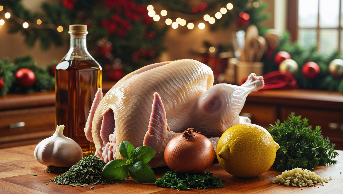 Запеченная индейка — это не просто блюдо, а настоящая звезда рождественского стола. Ее золотистая корочка, аппетитный аромат и нежное мясо не оставляют равнодушным даже взыскательного гурмана. Это блюдо символизирует изобилие и щедрость, поэтому обязательно включите его в праздничные угощения. В этой статье мы поделимся с вами достаточно простым, но изысканным рецептом запеченной индейки в средиземноморском стиле. Нежное мясо птицы приправлено смесью лимона, чеснока и трав, что придает ему свежий и пикантный вкус. Для приготовления запеченной индейки на 12–14 персон вам потребуются: Разогрейте духовку до 165 °C. Удалите внутренности и шею из индейки, тщательно промойте ее как внутри, так и снаружи, затем обсушите с помощью бумажных полотенец. В небольшой миске объедините оливковое масло, нарезанный чеснок, орегано, базилик, петрушку, тимьян, соль и перец. Осторожно отделите кожу от грудки индейки и вотрите часть получившейся смеси под кожу. Оставшуюся массу распределите по всей поверхн