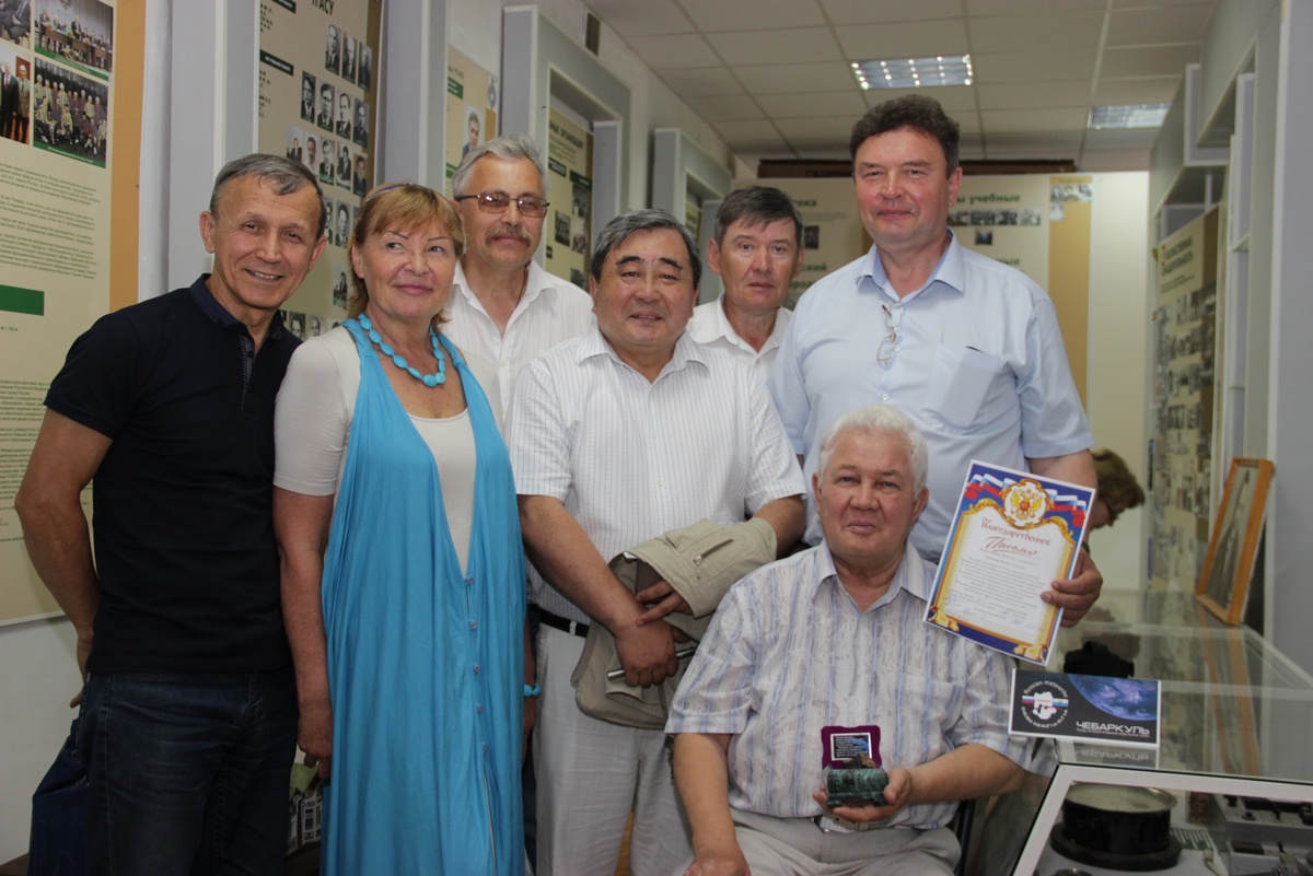 Несколько выпускников 1975 года, которые в студенческие годы учились в группе 102-2 строительного факультета ТИСИ, в честь 40-летия со дня окончания обучения собирались на вечер встречи в родном Томском государственном архитектурно-строительном университете. По традиции, все выпускники обязательно посещают Центр истории ТГАСУ. Вот и в тот раз староста, профорг и комсорг группы побывали там и подарили родному университету фрагмент знаменитого «Чебаркульского метеорита», больше известного как Челябинский. К сожалению, у нас в архивах сохранились только эти два снимка, нет более точной и подробной информации о группе выпускников. Может быть, кто-то узнает себя или своих знакомых на фото и откликнется? А пока мы предлагаем вам почитать информацию про само небесное тело. На Землю 15 февраля 2013 года упал крупный метеорит, названный впоследствии Челябинским. По мощности взрыва, сопровождавшего пролет космического тела в атмосфере Земли, он считается вторым в новой истории после Тунгусского.