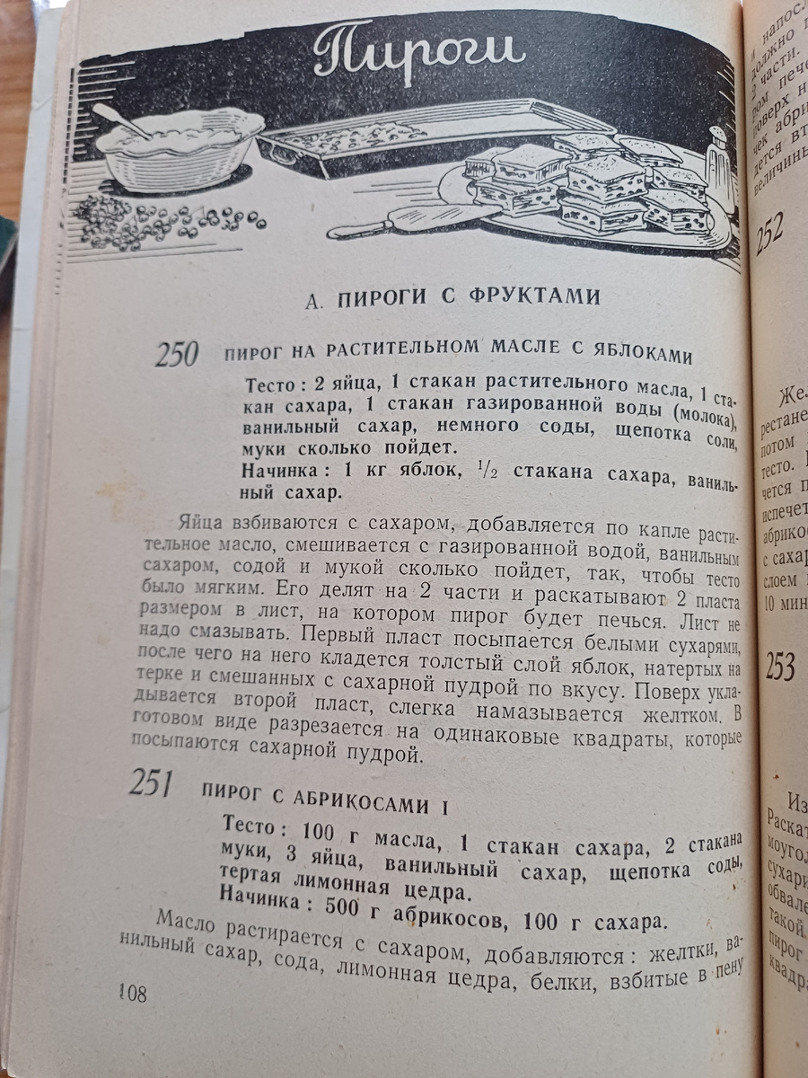 Пирог с фруктами и абрикосами. Рецепт 1961г
