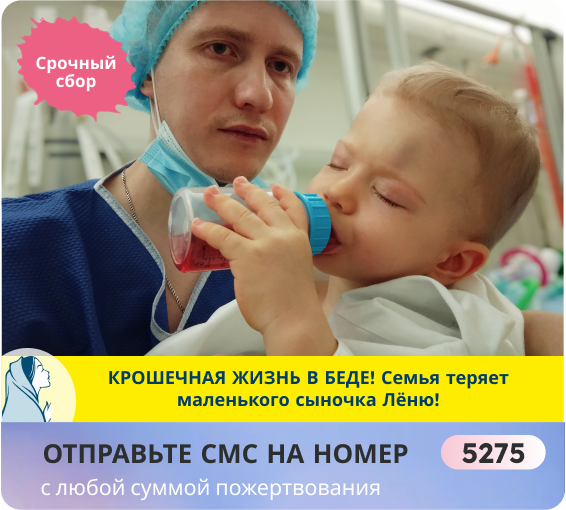 Здравствуйте, дорогие друзья! Лёня побывал на очередном лечении. Есть небольшие и дающие уверенность в победе новости! Доктора сказали, что состояние малыша стабильно. Опухоль не увеличилась! Это вселяет надежду, что жизнь малыша будет спасена! Конечно, это ещё не выздоровление. Но это наша общая заслуга! Закрытый сбор поможет не прекращать лечение Лёни. Друзья, сможем ли мы обрадовать Лёнечку закрытым сбором под Новый год? Как Вы думаете, может ли случиться такое декабрьское доброе волшебство для этого маленького человечка? Ведь он этого точно заслужил! Давайте вместе спасём Лёню от РАКА! ПОМОЧЬ ЛЁНЕ СЕЙЧАС > Когда мама узнала о будущем малыше на УЗИ, она была просто на седьмом небе от счастья. Она бежала от врача в коридор к мужу с самой счастливой улыбкой. Но Лёня едва выжил. Он родился всего 1510 гр. и попал в реанимацию. А спустя несколько месяцев мама выбежала из кабинета врача с крохой Лёнечкой на руках и рыдала навзрыд. РАК! Неужели это был ещё не конец их мучений?! Лёня боретс