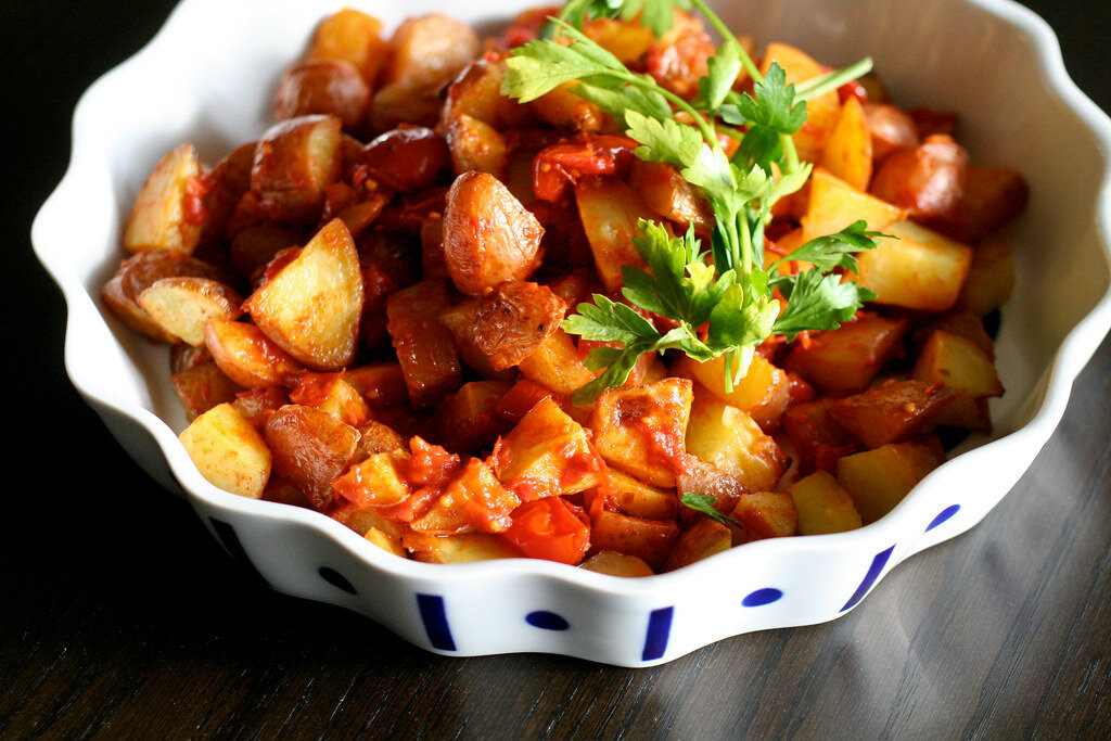 Пататас Бравас — популярная испанская закуска, представляющая собой жареный картофель с острым томатным соусом. Это блюдо является неотъемлемой частью тапас-культуры в Испании и любимо как местными жителями, так и туристами. История: Пататас Бравас, вероятно, появились в Мадриде в середине XX века. Это простое блюдо быстро завоевало популярность благодаря своей доступности и острому, запоминающемуся вкусу. Традиция: Пататас Бравас часто подают в барах и тавернах в качестве закуски к пиву или вину. Это блюдо символизирует испанскую общительность и любовь к простым, но вкусным блюдам. Рецепт (адаптированный для домашнего приготовления): Ингредиенты: Картофель (лучше всего сорт с низким содержанием крахмала) — 500 г