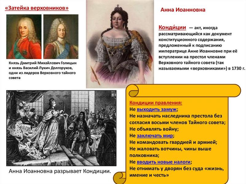 9) Анна Иоанновна. Кондиции. Бирон.