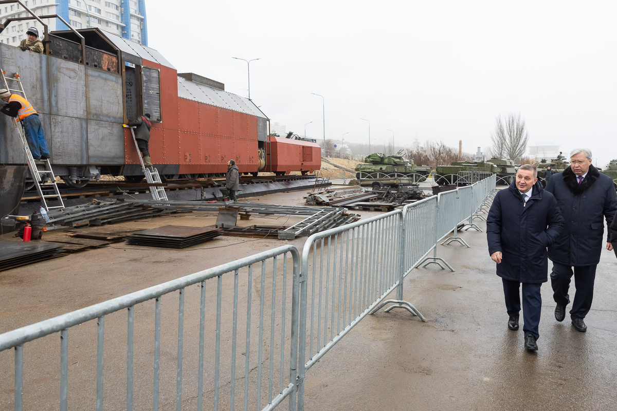 Губернатор Андрей Бочаров продолжает рабочие поездки по Волгограду. Ранее он оценил обновленную улицу Краснознаменскую, побывал на новогоднем представлении в театре кукол, теперь обсудил создание новой мемориальной экспозиции в Ворошиловском районе. Фото: пресс-служба администрации Волгоградской области Глава Волгоградской области посетил площадку, где создают бронепоезд времен Великой Отечественной войны. Композиция разместилась на набережной в Ворошиловском районе недалеко от памятника «Гаситель». В рамках рабочей встречи Андрей Бочаров обсудил вопросы создания совместного патриотического проекта с начальником Приволжской железной дороги Сергеем Альмеевым. Вместе они оценили ход работы и внесли предложения по дополнению объекта интерактивными элементами. Глава региона сообщил, что новая мемориальная экспозиция будет открыта в год 80-летия Великой Победы. Рассмотрение других вопросов совместной работы продолжилось на рабочей встрече в региональном ситуационном центре. Стороны обсудили