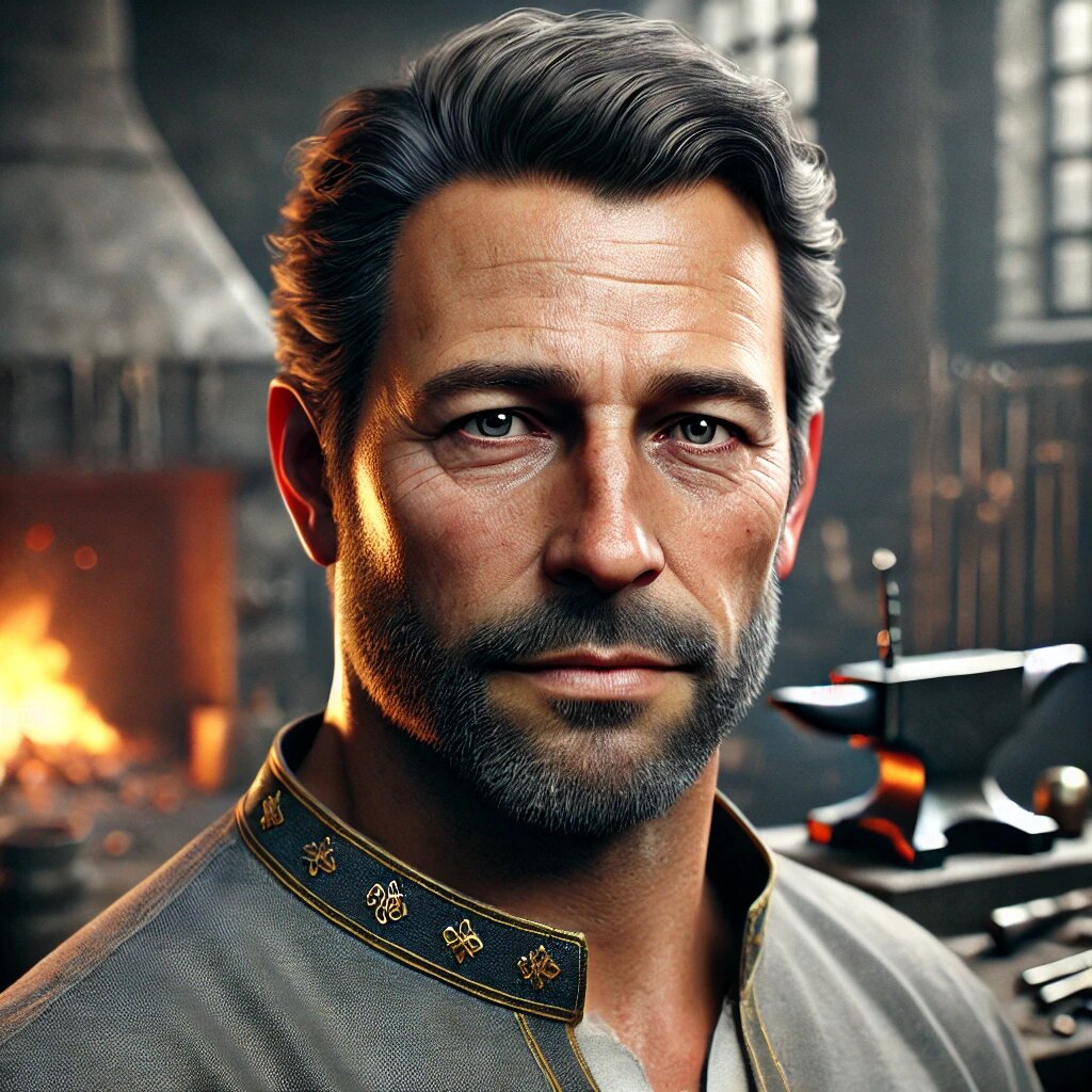 Бертольд Хальт , один из самых прямодушных и честных людей внутри совета. Человек, чья жизнь была расколота на «до» и «после». Простолюдин, в юности он был полон амбиций и мечтаний, жаждая славы на поле боя. Вступив в армию, он быстро зарекомендовал себя как отличный боец, а далее - командир, способный вдохновлять своих солдат на самые рисковые авантюры. Однако одна из них изменила всё: рисковая вылазка обернулось катастрофой приведя к гибели почти всех его подчинённых. Хотя он сам чудом выжил, чувство вины преследовало его многие годы. Вернувшись в родной город после отставки, Бертольд нашёл утешение в ремесле. В работе с металлом он обрел не только способ забыться, но и способ отдать дань памяти тем, кого потерял. Каждый меч, каждая подкова, каждая кованая деталь становились символом его попыток искупить вину. Его изделия быстро завоевали популярность, а мастерская превратилась в место, куда стекались ученики со всех уголков королевства.Став главой гильдии ремесленников, Бертольд авт