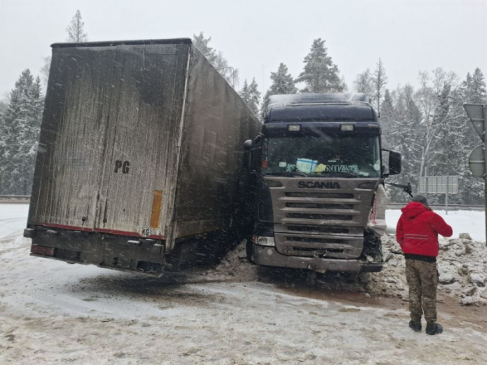Утром 25 декабря в Ковровском районе на 242 км автодороги М-7 «Волга», по предварительным данным, водитель автомобиля «Скания» с полуприцепом, следуя в сторону Нижнего Новгорода, не справился с управлением и совершил наезд на отбойник. Фото: 33.мвд.рф На этом же участке трассы, спустя некоторое время, у следовавшего в попутном направлении атомобиля «Даф» произошел удар полуприцепа о кабину. После этого большегруз остановился в разворотной петле между металлическими барьерными ограждениями. Фото: 33.мвд.рф О пострадавших в результате ДТП информация не поступала. Причины и обстоятельства ДТП устанавливаются.