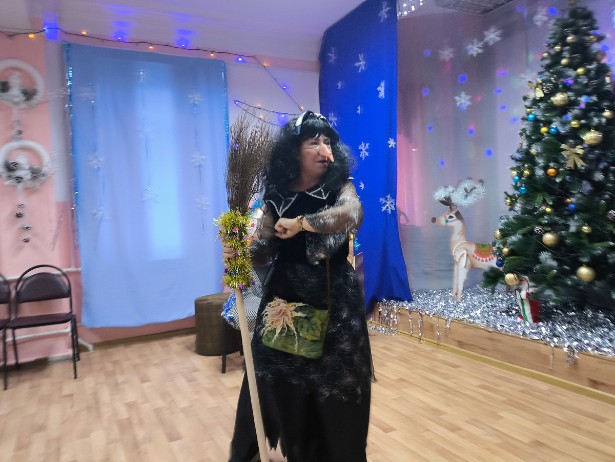 Сегодня в школе был утренник. Вообще они уже третий день идут, а старшеклассники ждут завтра дискотеку. Всё как во всех школах. И плевать, что это коррекционка. Для тех, кто впервые на канале: в нашей семье растёт сын Гошка. Гошке четырнадцать лет, он слепой и у него УО. Гоша учится в коррекционной школе. Каждый год учителя устраивают праздник: пишут сценарий, украшают зал, шьют костюмы. Эта шикарная Баба Яга — Любовь Александровна, она была у Гошки логопедом в пятом классе. Он, конечно, её узнал и охотно шёл с ней танцевать. Эту молодую учительницу обожают все дети. Вы же тоже любили таких молодых, красивых и озорных? Дед Мороз получился весьма брутальным, хоть и говорил женским голосом. А спиной стоит девятиклассник. Он играет Лешего и жутко волнуется. Ну и фото на память! Дети и учителя. И танцующий Гошка. И ещё вам наша школьная выставка, она же конкурс. Это входная группа. Шикарная ёлка, взяла идею на заметку. Так и не поняла, но кажется это воздушный пластилин. Тут без