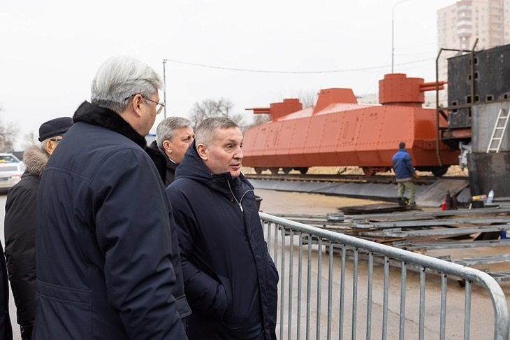 В Волгограде в ходе рабочей поездки губернатор Андрей Бочаров вместе с начальником Приволжской железной дороги Сергеем Альмеевым проинспектировал ход создания возле «Гасителя» мемориальной площадки с бронепоездом. Как сообщает V102.RU со ссылкой на пресс-службу областной администрации, интерактивная композиция будет открыта в 80-летний юбилей Победы в Великой Отечественной войне. Напомним, в марте этого года стартовала сборка экспозиции с полноразмерной копией бронепоезда, посвященной памяти железнодорожникам военного Сталинграда. – Особого внимания заслуживает активная работа Приволжской железной дороги в сфере патриотического воспитания подрастающего поколения, сохранения исторической памяти и правды. Так, благодаря трудовому коллективу на легендарном Мамаевом кургане ранее была создана и благоустроена аллея железнодорожников. В следующем году, в году 80-летия Великой Победы, мы вместе с Приволжской железной дорогой откроем в городе-герое Волгограде новую мемориальную экспозицию, – о