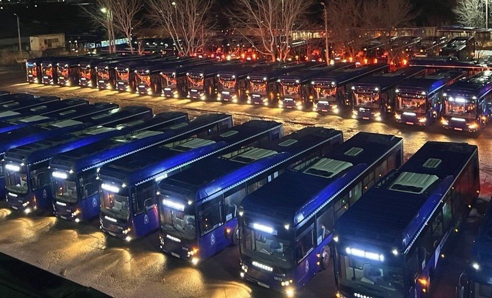 Длинную виртуальную гирлянду составили более 450 астраханских синих автобусов: находясь на стоянке после смены, они одновременно зажгли все свои огни и лампочки (фары, поворотники, аварийные сигналы и гирлянды в салонах). Случилось это в половине второго ночи после рабочей смены.
