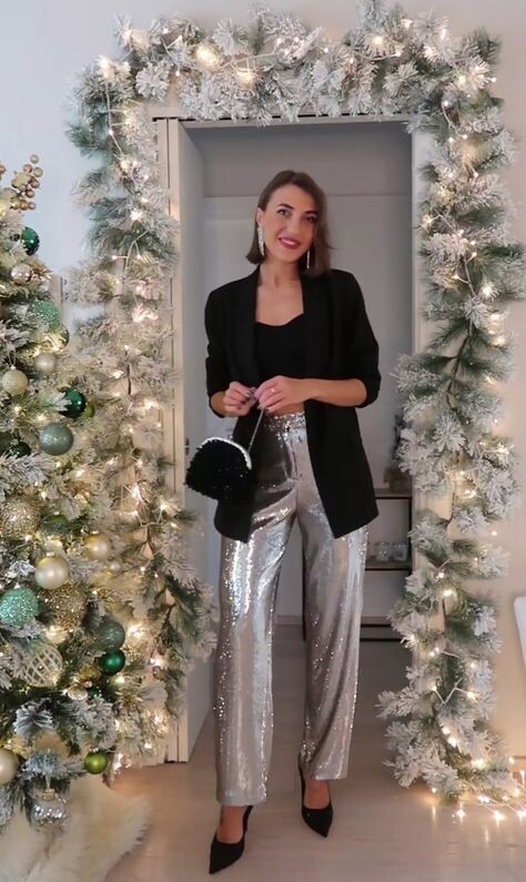 Год подходит к концу, и после того, как праздничное настроение и хлопоты все больше нарастают, мы задумываемся и о праздничном модном образе. Помимо бенгальских огней, оливье и тому подобного, в праздничный набор входит еще и симпатичный новогодний наряд. Девиз этого года - больше значит больше - больше блесток, больше бахромы и больше перьев. Многие не хотят отказываться от комфорта спортивных штанов. Короткие вечерние платья и мини-юбки? Слишком холодно, снег и лед. Кому хочется начать новый год с хлюпающим носом и першением в горле? Для вас 5 идей нарядов, которые блестят и сверкают, но ради которых не придется мириться с неудобством в новогоднюю ночь. Интернет-запросы о брюках в стиле диско увеличились на 206 процентов по сравнению с прошлым годом. Неудивительно, ведь мерцающие и блестящие брюки можно легко улучшить. Например, если вы носите трикотаж и сапоги, вы легко можете надеть их в офис на посиделки. Если скомбинировать топ из того же материала с брюками в стиле диско, вы буд