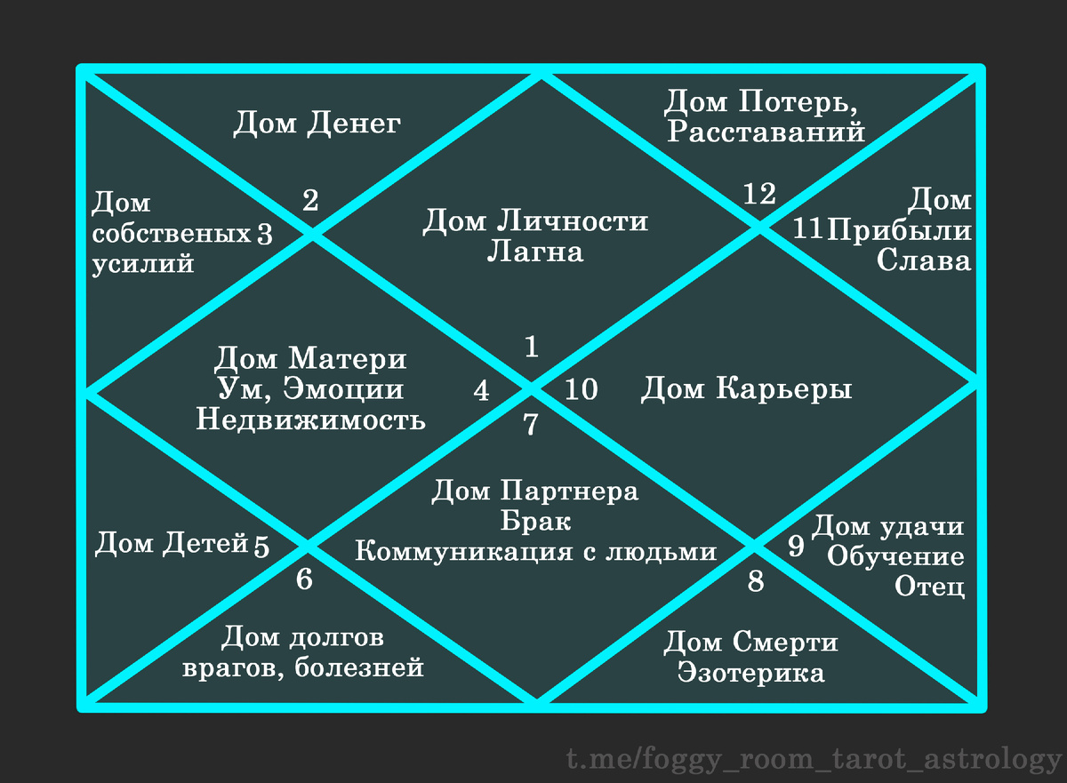 Существуют различные мнения на тему того, с чего начинать изучение Джйотиш, однако по моему убеждению, начинать следует с Домов – ведь именно они являются скелетом, на который наслаиваются мышцы и сухожилия (Знаки зодиака) и который закрывает собой органы (Планеты). К примеру: основные значения 2-го дома – это деньги, пищевые привычки, лицо, родительская семья, детство, речь, голос, память. ⭐️ Вот все дома слева-направо сверху-вниз: Всего в Джйотиш существует два стиля построения домов Гороскопа, которые в сущности отражают одно и то же, но читаются немного по-разному. 🔥 О них и подробнее о каждом доме в будущих постах. Больше интересной информации вы найдете здесь. Группа ВК: https://vk.com/foggyroom Инста: @foggyroom #джйотиш #джйотиш_астрология #ведическая_астрология #ведическаяастрология #астрология