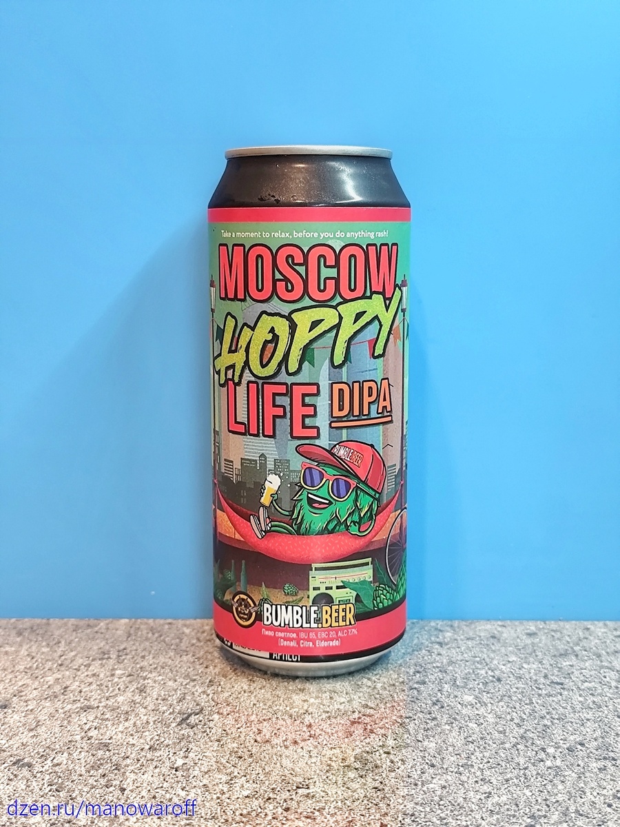 Под пивко Moscow Hoppy Life DIPA от пивоварни BUMBLE.BEER. Сорт старый - впервые был сварен в 2018 году. Вот что о нем рассказывают пивовары: Освежающий и в меру плотный DIPA с уверенной горечью. Во вкусе и в аромате тропические фрукты, цитрус и сосна. Алкоголь хорошо спрятан и не помешает Вам насладиться вкусом и ароматом этого сорта. Описание обнадеживает. Главное, чтобы не обманули. Пиво я попробовал за неделю до того, как ему исполнилось шесть месяцев. Срок годности составляет 200 суток при хранении в холодильнике. ТТХ: Пиво золотистое, прозрачное. Пены прилично, держится долго. Аромат цитрусово-тропический, с легкими сосновыми нотками. Во вкусе чуть сладковатые фрукты, в том числе и тропические, цитрусы с явным апельсином, и чуток хвои. В послевкусии появляется терпкая хмелевая горчинка в разы меньше заявленного уровня. Алкоголь в органолептике не заметен. Пьется прекрасно. Хорошо, но ничего экстраординарного. Восемь баллов. Брал за 250 рублей в одной из местных разливаек. Продег