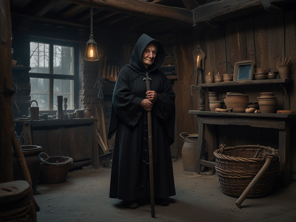 В один мрачный день в кузницу, где трудился мастер, вошла сама Смерть. Она выглядела устрашающе: сгорбленная фигура, лицо и руки скрыты под истрепанной накидкой, а в руках держала длинную косу, которая, казалось, была создана для того, чтобы убирать жизни. Кузнец замер в страхе, осознавая, что его час настал, и что он, вероятно, станет очередной жертвой этой безжалостной сущности. Однако, прежде чем приступить к своей кровавой жатве, Смерть обратилась к кузнецу с неожиданной просьбой: — Наточи мою косу, а то она совсем проржавела и не может косить. Кузнец, потрясенный, схватил косу и начал работать над ней, но делал это медленно, надеясь отсрочить свою неизбежную участь. Он старательно вбивал инструмент в наковальню, обдумывая каждое движение, ведь это была не просто коса, а орудие, которое забирало жизни. Со временем, когда страх немного отступил, кузнец решился заговорить со Смертью, желая узнать о ней больше. — Не верится, что я держу в руках оружие, которое стольких людей скосило